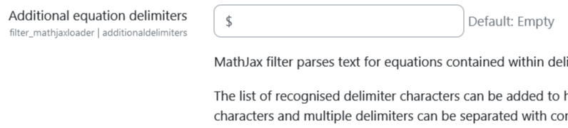 Single dollar sign delimiter is not a standard notation in LaTeX. However, most of mathematicians are using single dollar sing delimiter due to its convenience. So, it is crucial to enable it in your LMS. This article shows how to enable it in Moodle LMS.